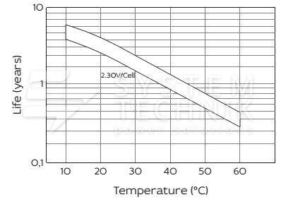 - Срок хранения без подзаряда: 6 мес. при 25°C;