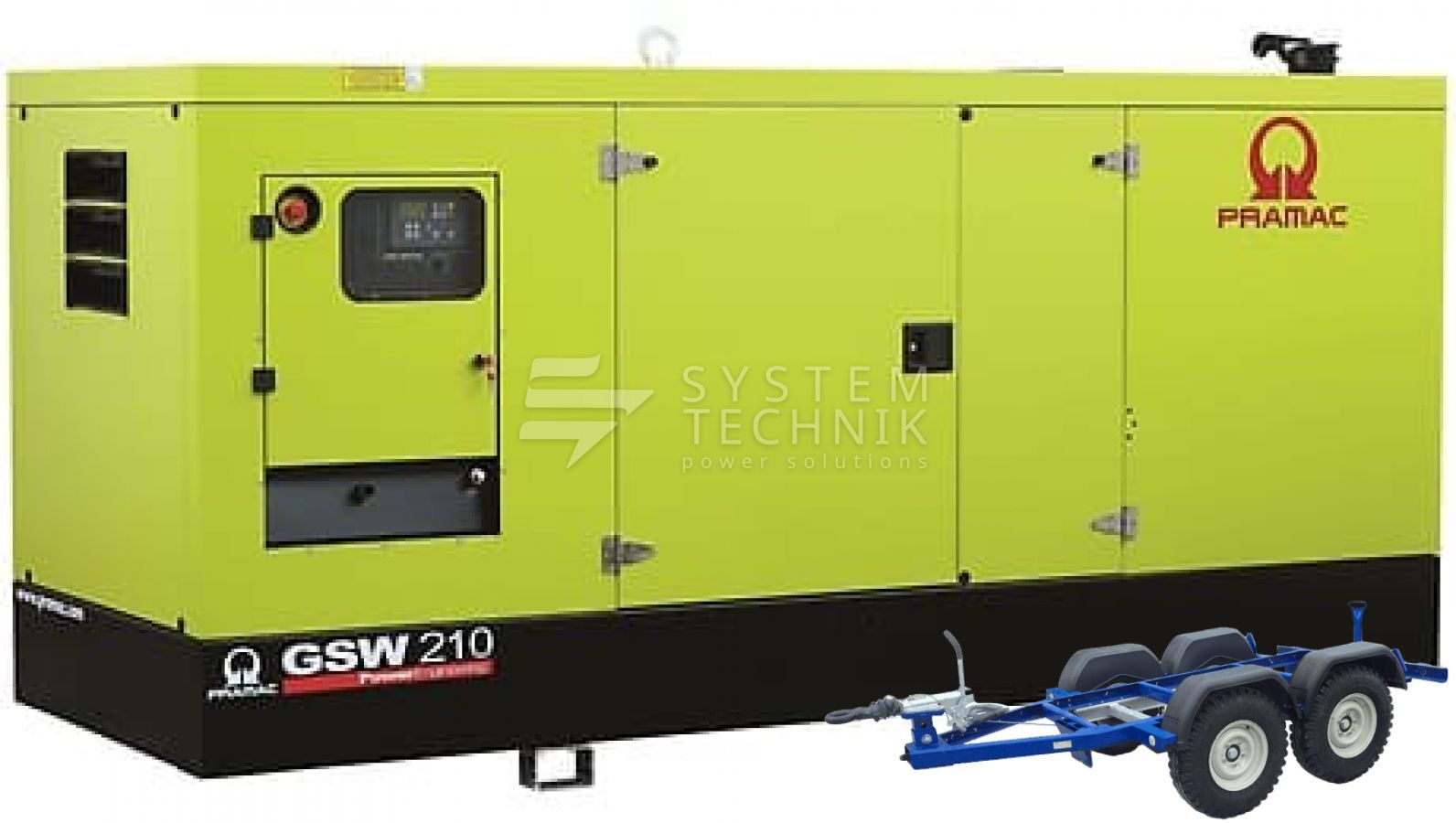 - Дизельный генератор Pramac GSW 210 P 400V В кожухе на прицепе